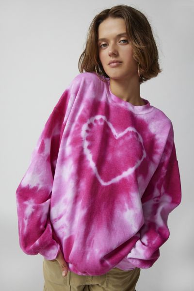Urban Renewal Recycled Heart Tie Dye Crew Neck Sweatshirt In Pink Modesens