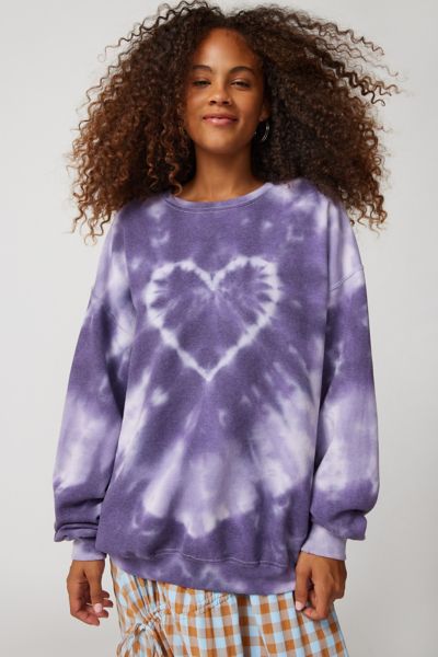 Urban Renewal Recycled Heart Tie Dye Crew Neck Sweatshirt In Purple Modesens